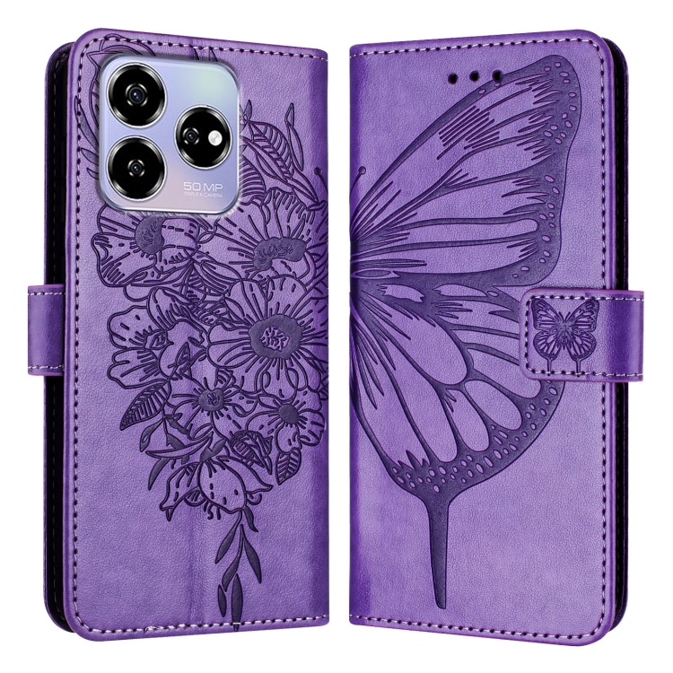 Funda de Cuero para ZTE Blade V60/Axon 60 4G con Diseño de Mariposa en Relieve (Morado)