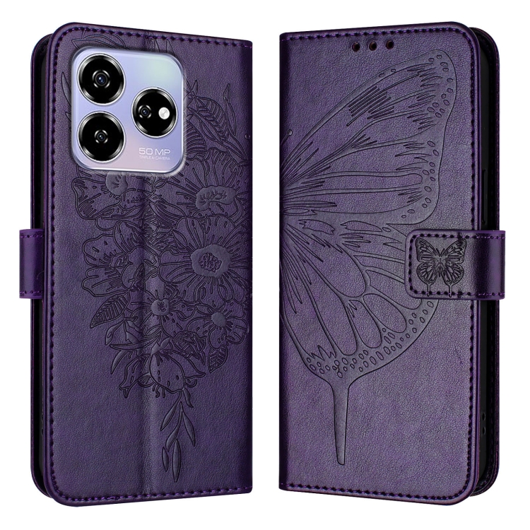 Funda de Cuero para ZTE Blade V60/Axon 60 4G con Diseño de Mariposa en Relieve (Morado Oscuro)