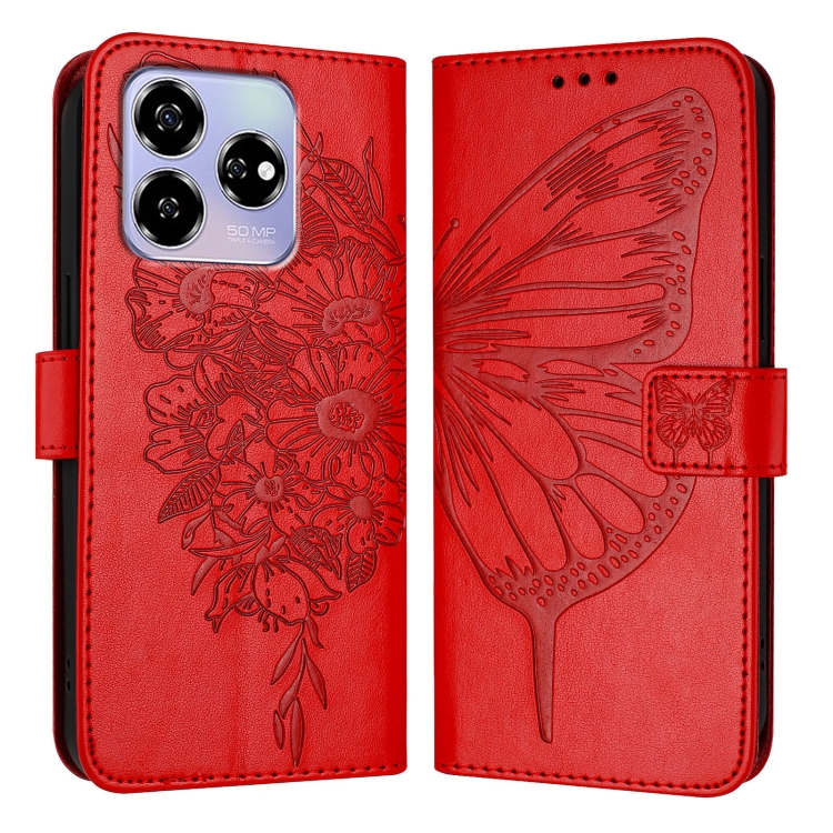Funda de Cuero ZTE Blade V60/Axon 60 4G Diseño Mariposa En Relieve (Roja)