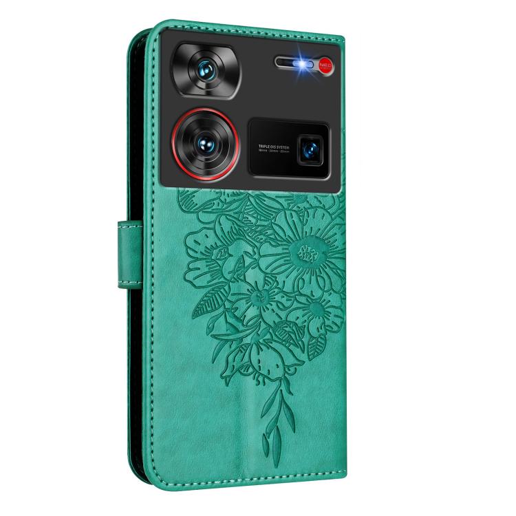 Funda de Cuero para ZTE Nubia Z60 Ultra con Diseño de Mariposa en Relieve (Verde)
