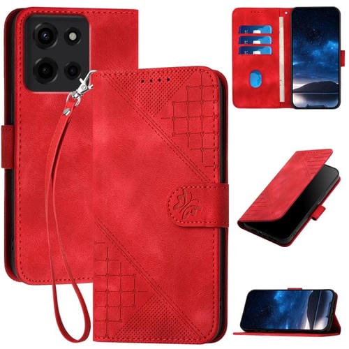 Funda de Cuero Motorola Moto G 2025 con Diseño Mariposa en Relieve y Cordón (Rojo)