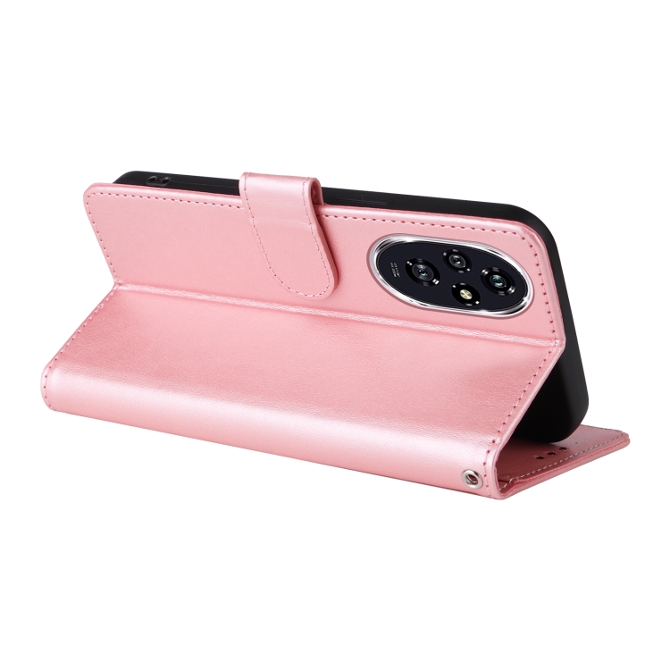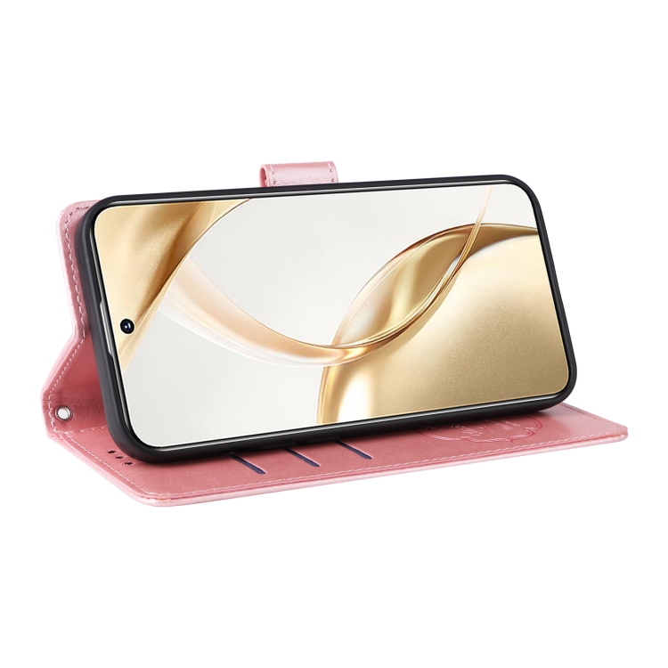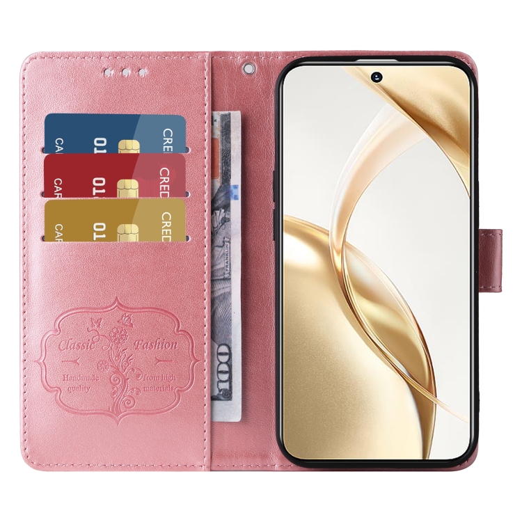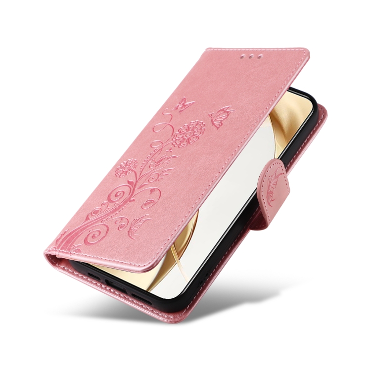 Funda de Cuero Honor 200 con Diseño de Mariposas y Flores en Relieve (Oro Rosa)