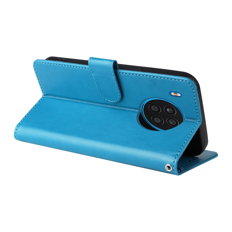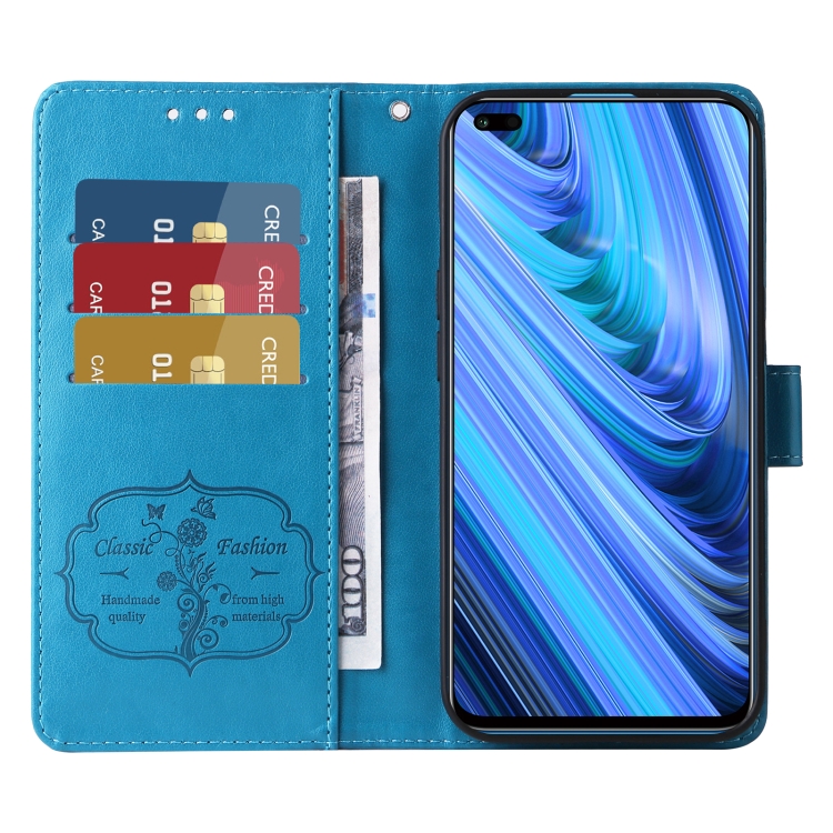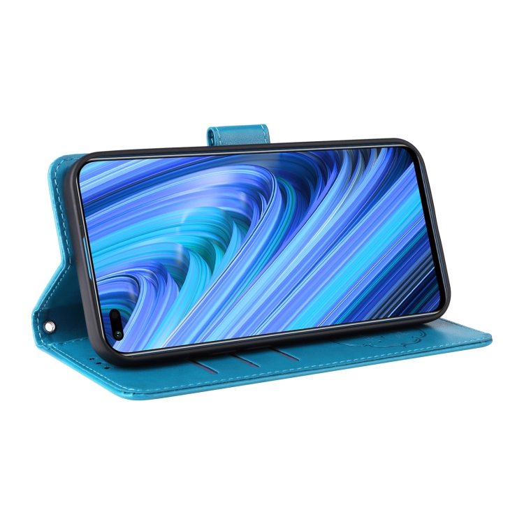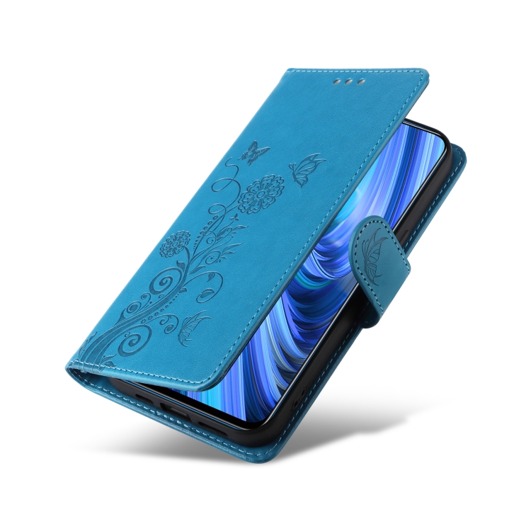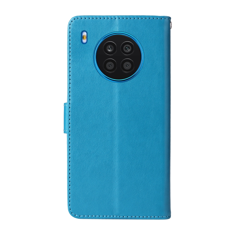 Funda de Cuero con Diseño de Mariposas y Flores en Relieve para Honor 50 Lite/X20/Huawei Nova 8I (Azul)