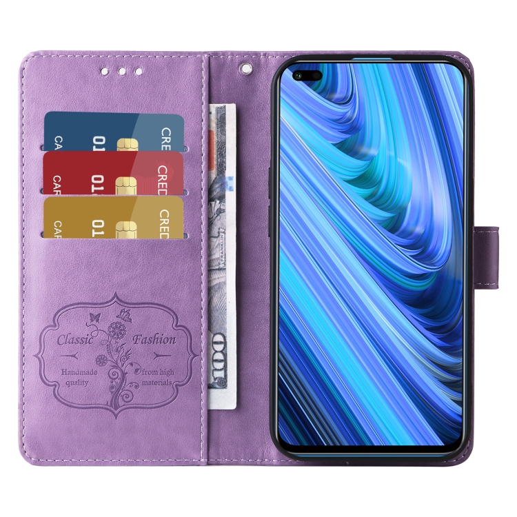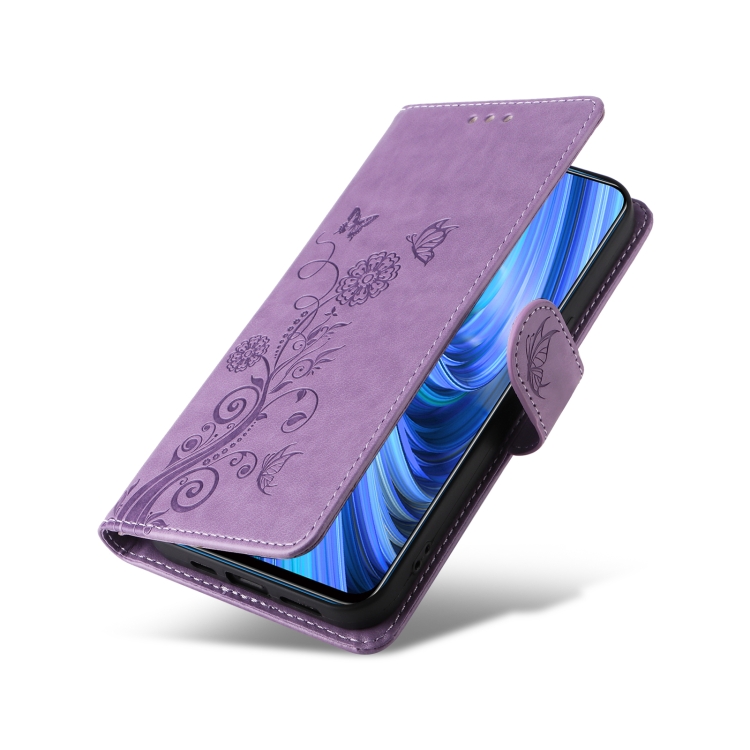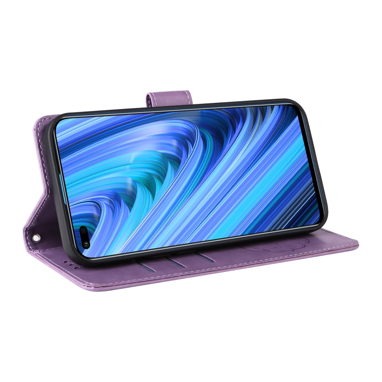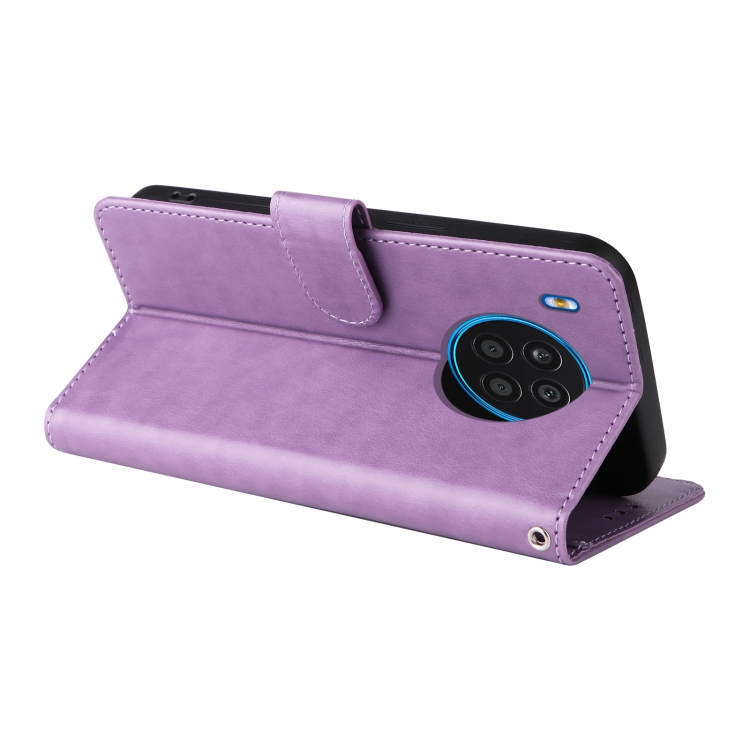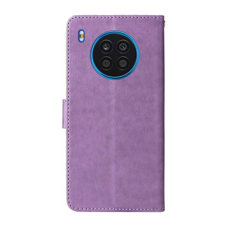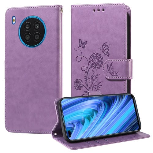 Funda de Cuero para Honor 50 Lite X20 Huawei Nova 8I con Mariposas y Flores en Relieve (Morado)