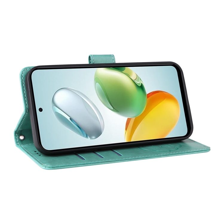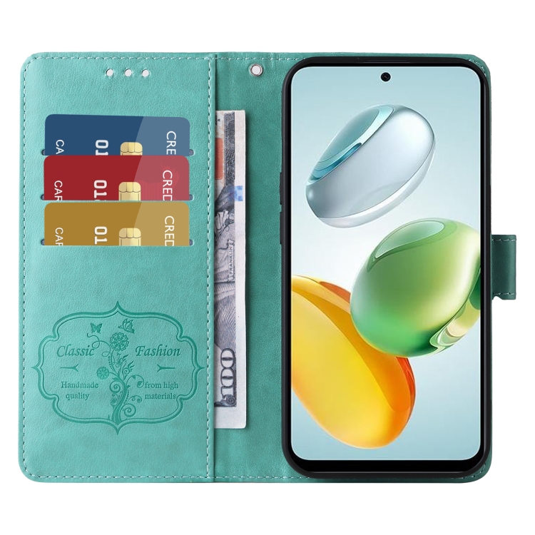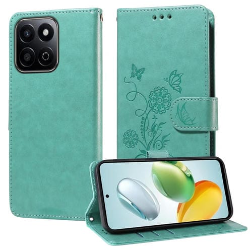 Funda de Cuero para Honor Play 60 Plus con Diseño de Mariposas y Flores en Relieve (Verde)