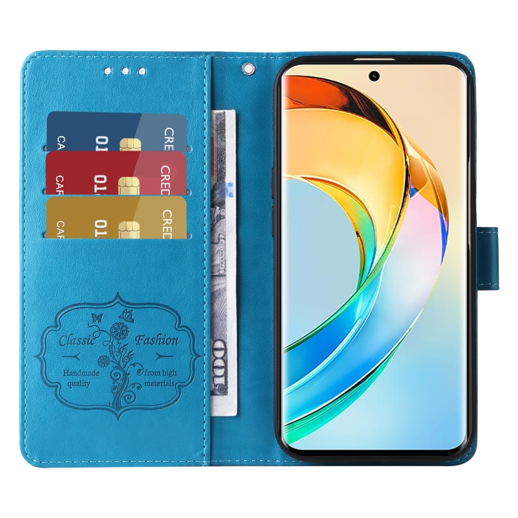 Funda de Cuero para Honor X50 Gt y X50 Pro con Diseño de Mariposas y Flores en Relieve (Azul)