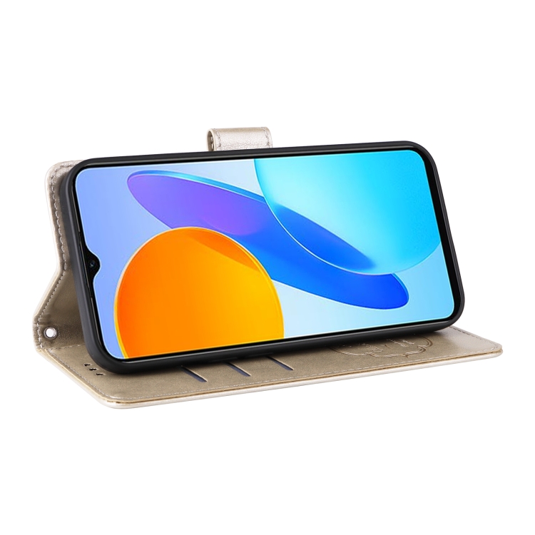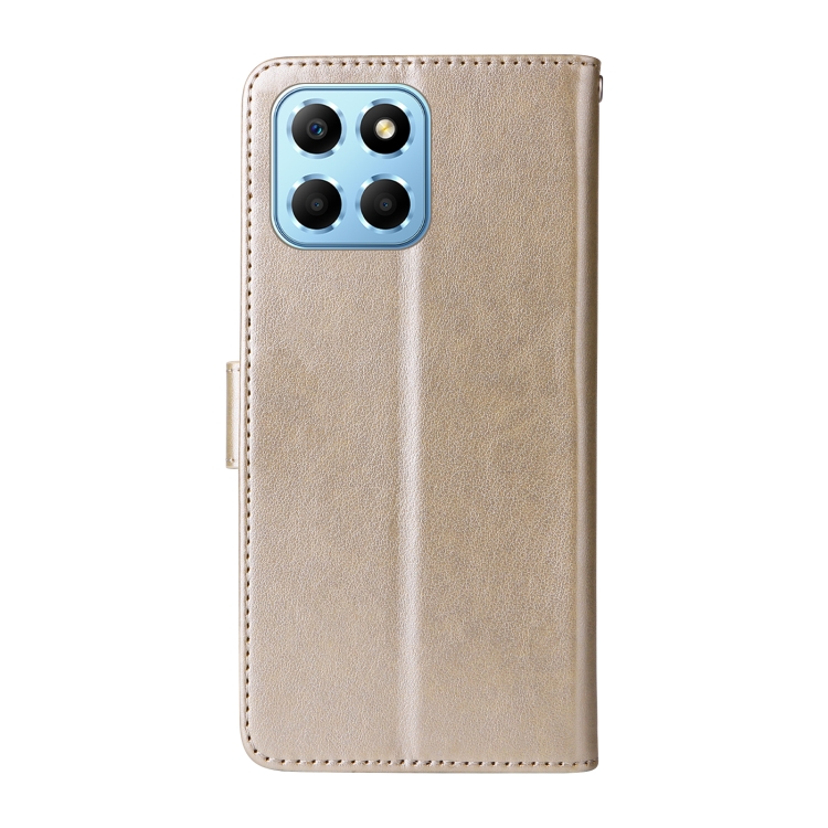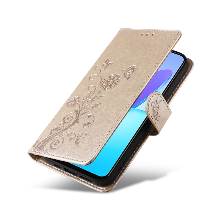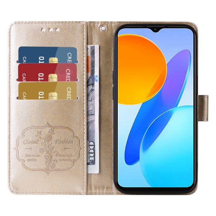 Funda de Cuero con Diseño de Mariposas y Flores en Relieve para Honor X8 5G/X6 4G/X8A 5G (Dorada)