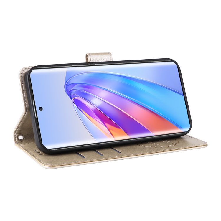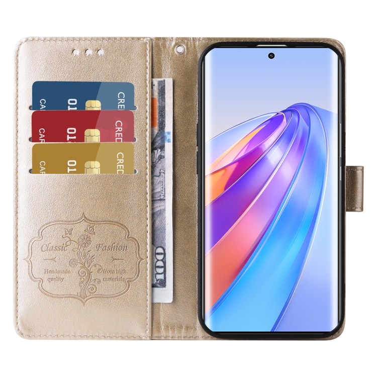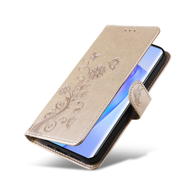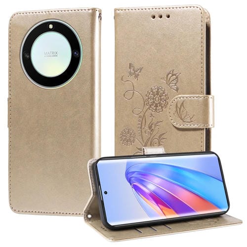 Funda de Cuero con Diseño de Mariposas y Flores en Relieve para Honor X9A 5G Magic5 Lite X40 5G (Dorada)