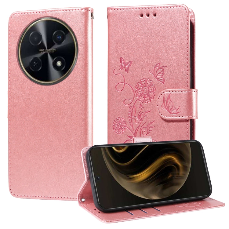 Funda de Cuero Huawei Enjoy 70 Pro 4G Nova 12I con Mariposas y Flores en Relieve (Oro Rosa)