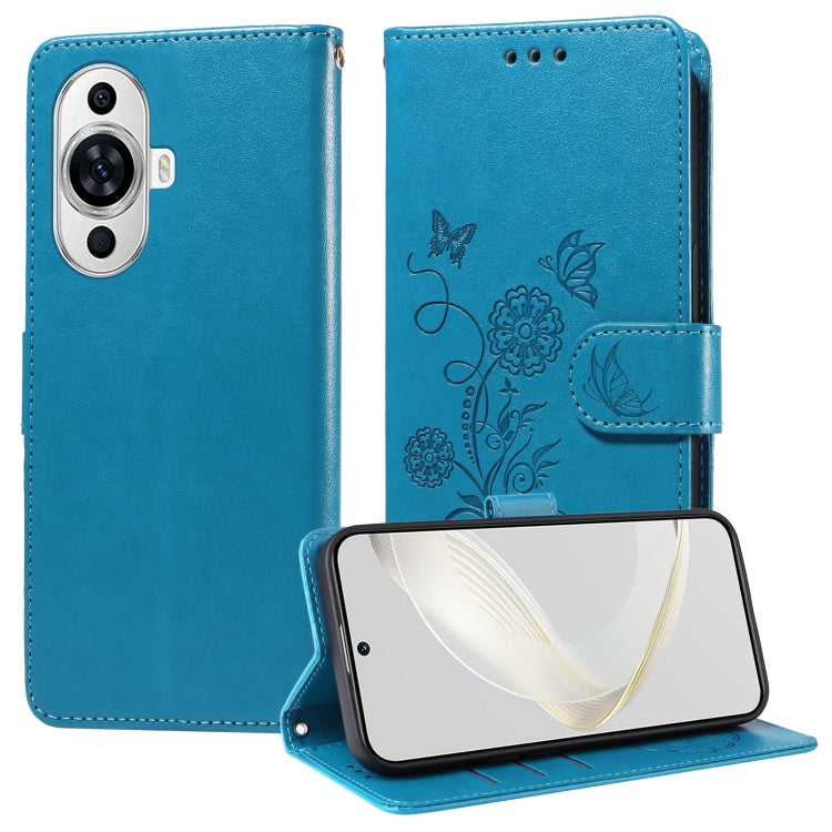 Funda de Cuero para Huawei Nova 11 Pro y Nova 11 Ultra con Diseño de Mariposas y Flores en Relieve (Azul)