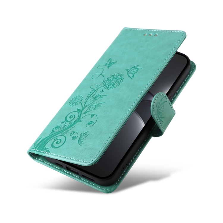 Funda de Cuero Huawei Nova 13 Pro con Diseño de Mariposas y Flores en Relieve (Verde)