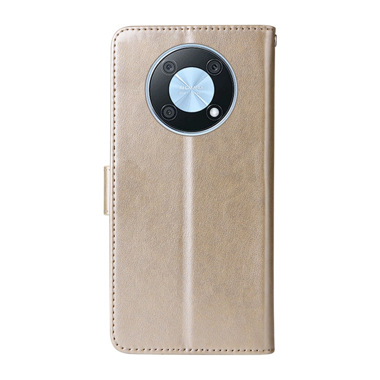 Funda de Cuero para Huawei Nova Y90 con Diseño de Mariposas y Flores en Relieve (Dorada)