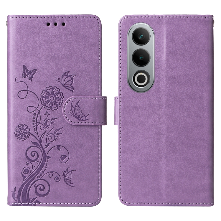 Funda de Cuero para OnePlus Ace 3V con Diseño de Mariposas y Flores en Relieve (Morado)