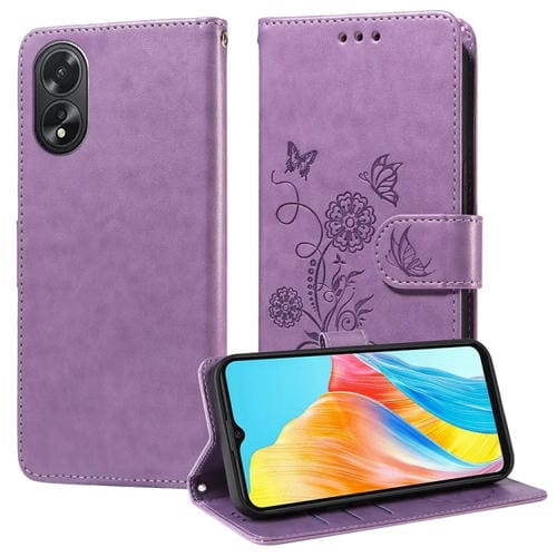 Funda de Cuero con Diseño de Mariposas y Flores En Relieve para Oppo A38 4G Global/A18 4G (Morado)