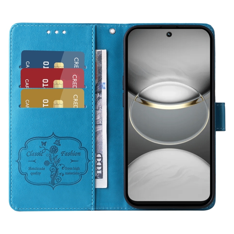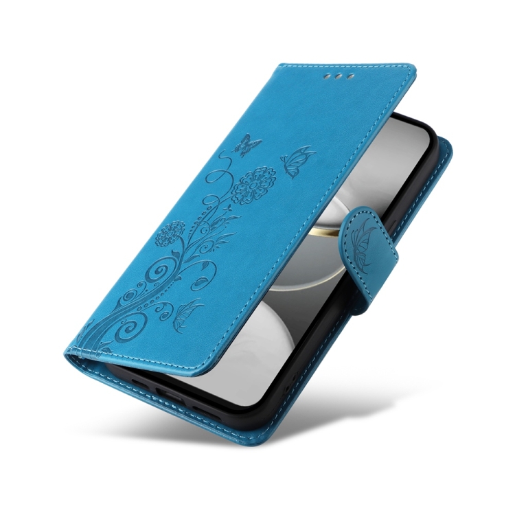 Funda de Cuero para Tecno Spark 30 4G con Diseño de Mariposas y Flores en Relieve (Azul)