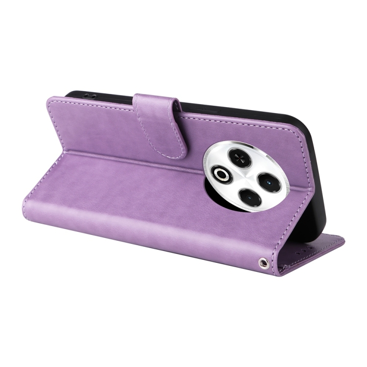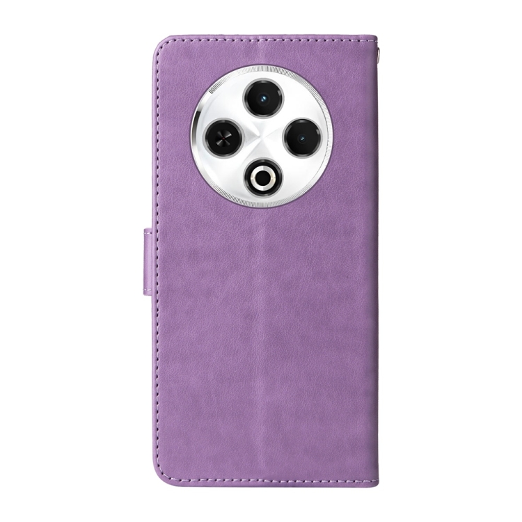 Funda de Cuero para Tecno Spark 30 4G con Diseño de Mariposas y Flores En Relieve (Morado)