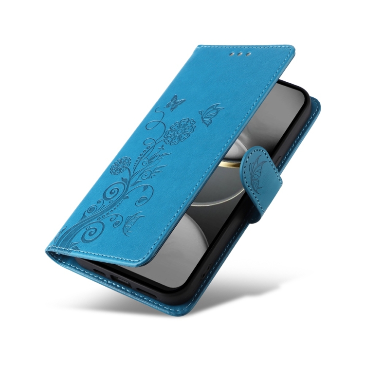 Funda de Cuero para Tecno Spark 30 Pro 4G con Diseño de Mariposas y Flores en Relieve (Azul)