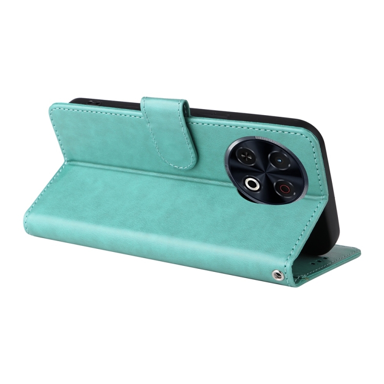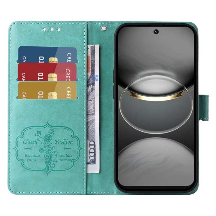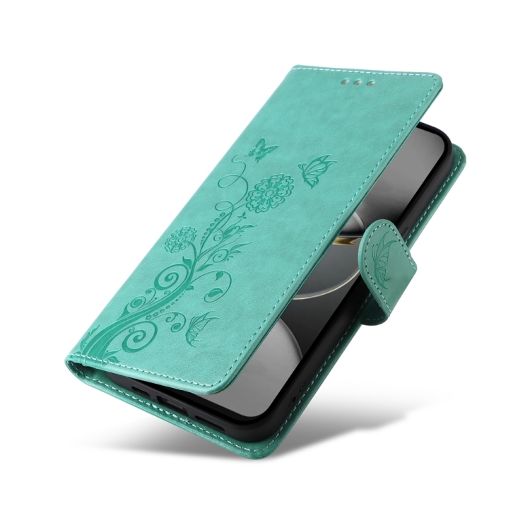 Funda de Cuero para Tecno Spark 30 Pro 4G con Diseño de Mariposas y Flores en Relieve (Verde)
