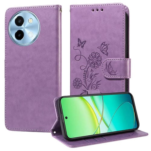 Funda de Cuero con Diseño de Mariposas y Flores En Relieve para Vivo Y38 5G / T3X 5G (Morado)