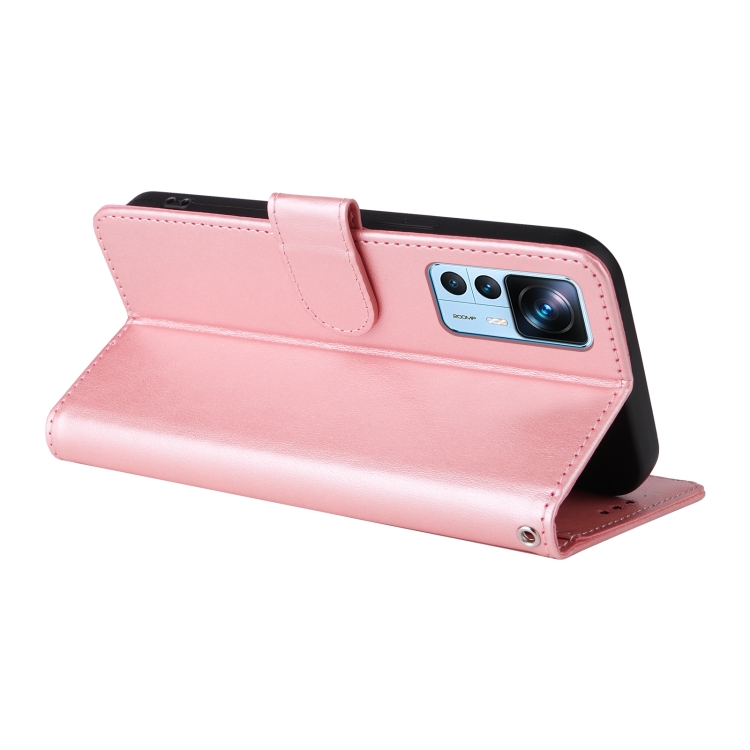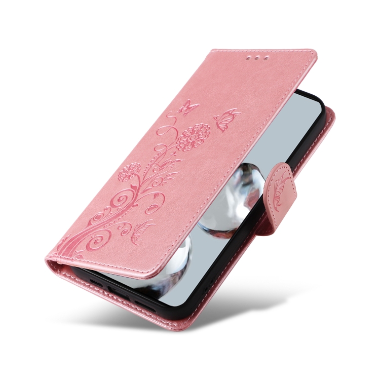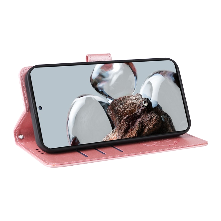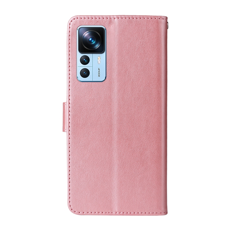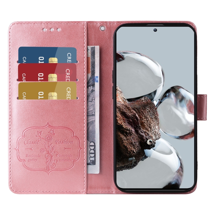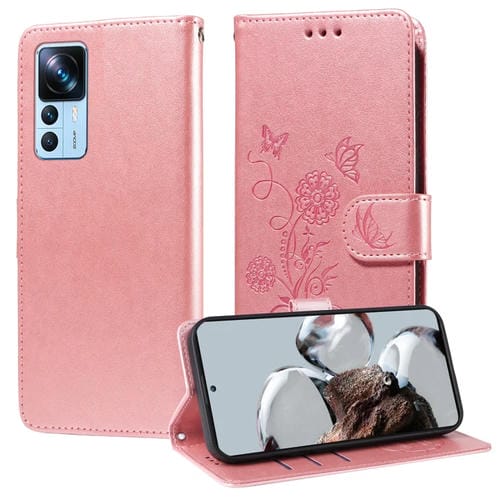 Funda de Cuero con Diseño de Mariposas y Flores En Relieve para Xiaomi 12T / 12T Pro / Redmi K50 Ultra (Oro Rosa)