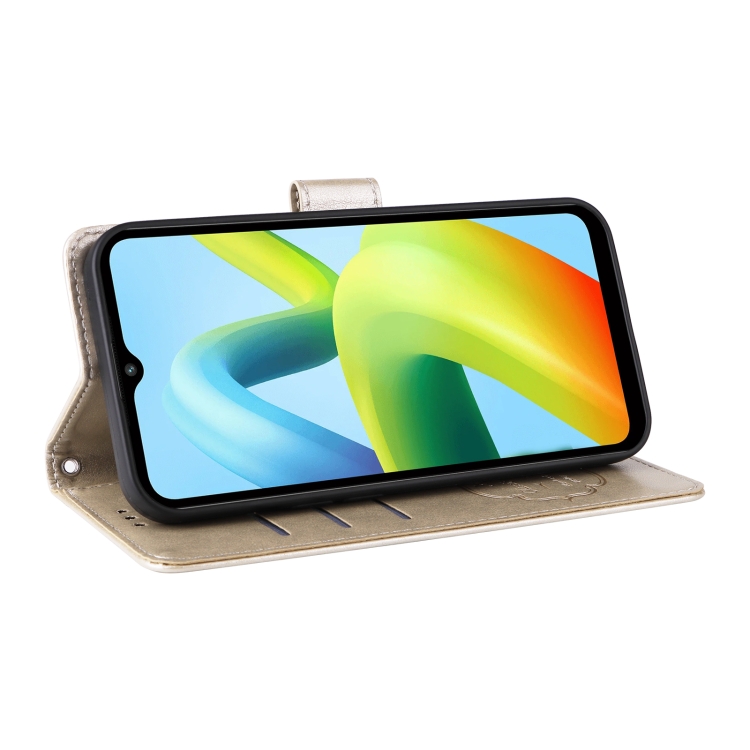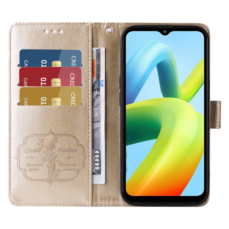 Funda de Cuero con Diseño de Mariposas y Flores En Relieve para Xiaomi Poco C50/C51 (Dorada)