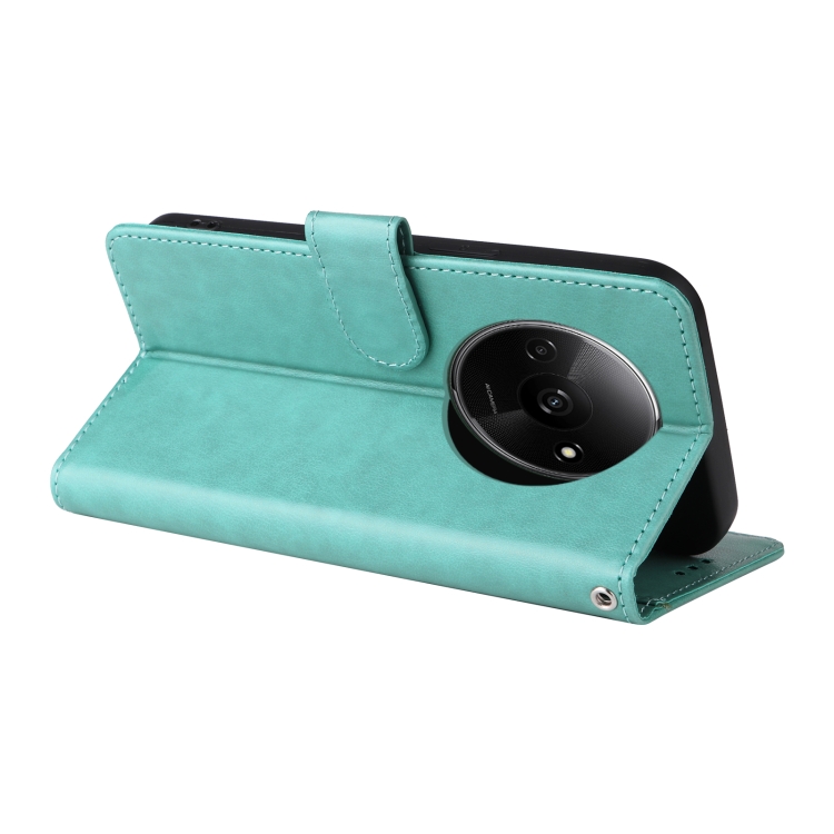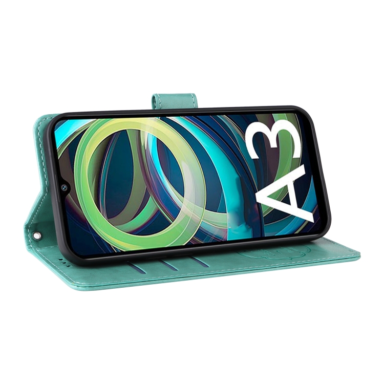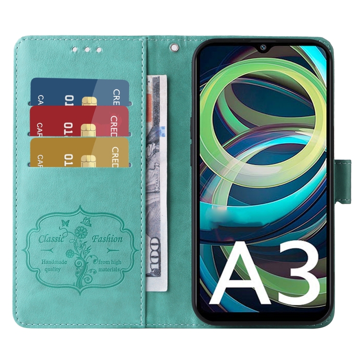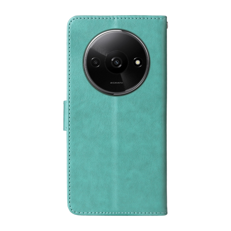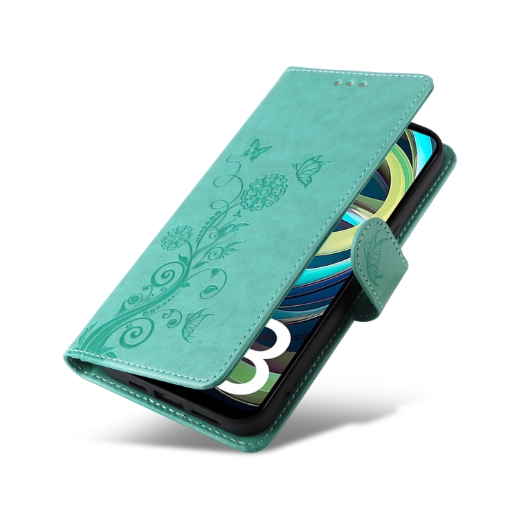 Funda de Cuero con Diseño de Mariposas y Flores En Relieve para Xiaomi Poco C61 4G/Redmi A3 4G (Verde)