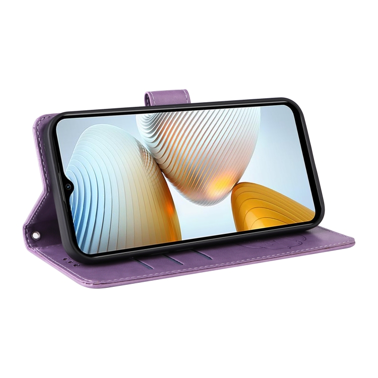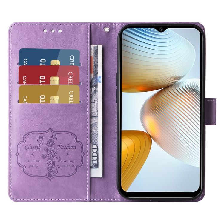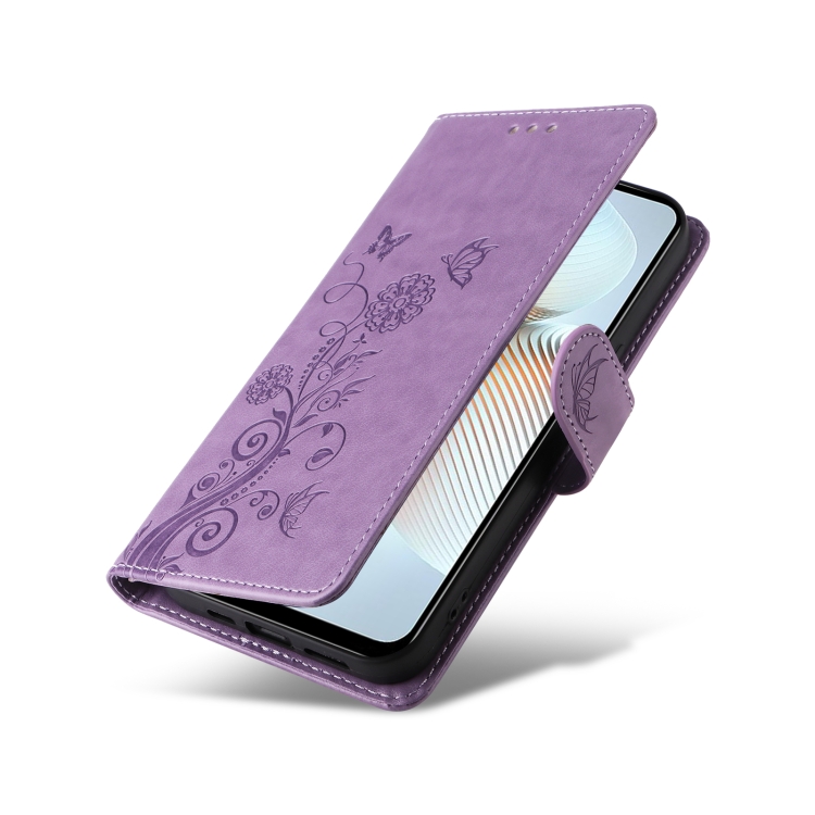 Funda de Cuero con Diseño de Mariposas y Flores En Relieve para Xiaomi Poco M4 5G/M5 4G (Morado)