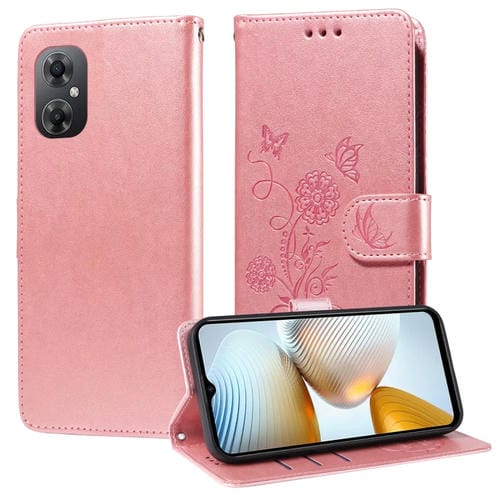Funda de Cuero con Diseño de Mariposas y Flores En Relieve para Xiaomi Poco M4 5G/M5 4G (Oro Rosa)