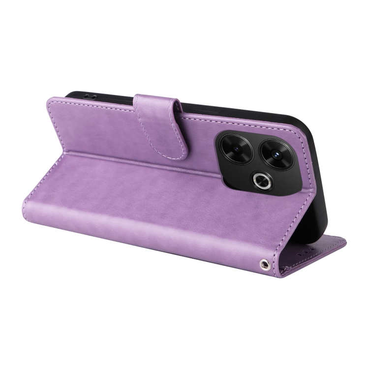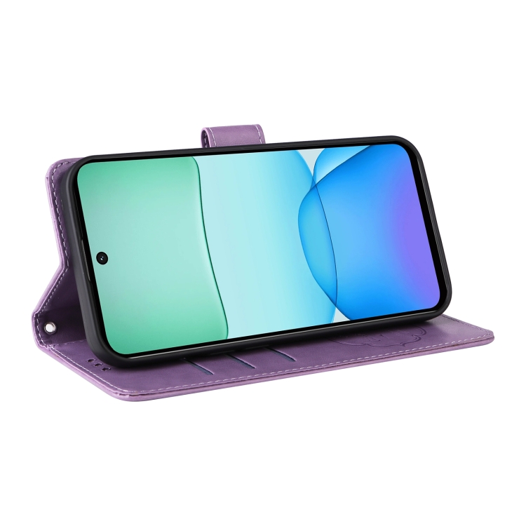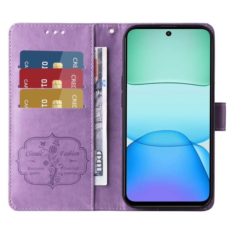 Funda de Cuero con Diseño de Mariposas y Flores En Relieve para Xiaomi Poco M6 4G (Morado)