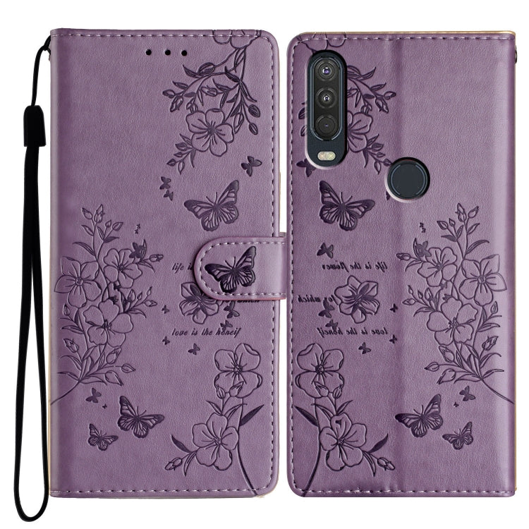 Funda de Cuero para Motorola One Action con Diseño de Mariposas y Flores (Morado)