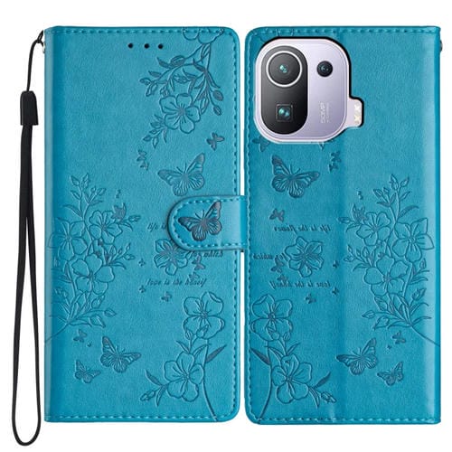 Funda de Cuero con Diseño de Mariposas y Flores para Xiaomi Mi 11 Pro (Azul)