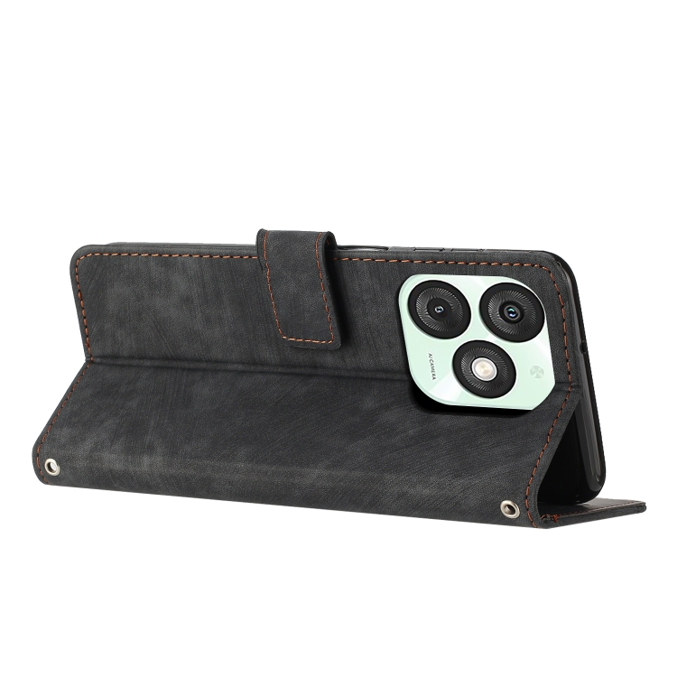 Funda de Cuero Itel A50 con Diseño de Rayas y Cordón (Negro) Tacto Agradable