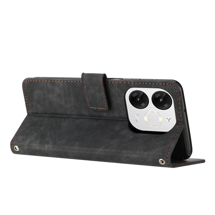 Funda de Cuero Itel A80 con Diseño de Rayas y Cordón (Negro)