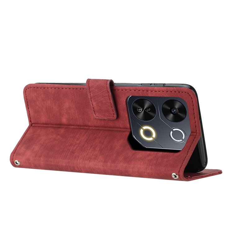Funda de Cuero Itel P65 con Diseño de Rayas y Cordón (Rojo)