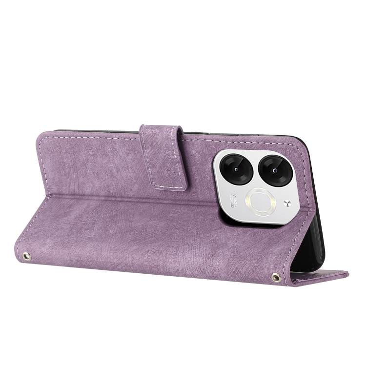 Funda de Cuero Itel A80 con Diseño de Rayas y Cordón (Morado)