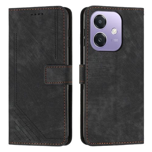 Funda de Cuero con Diseño de Rayas y Tacto Agradable para Oppo A3X (Negra)