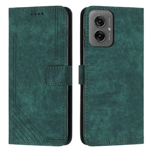 Funda de Cuero Motorola Moto G55 Diseño de Rayas Tacto Sedoso (Verde)