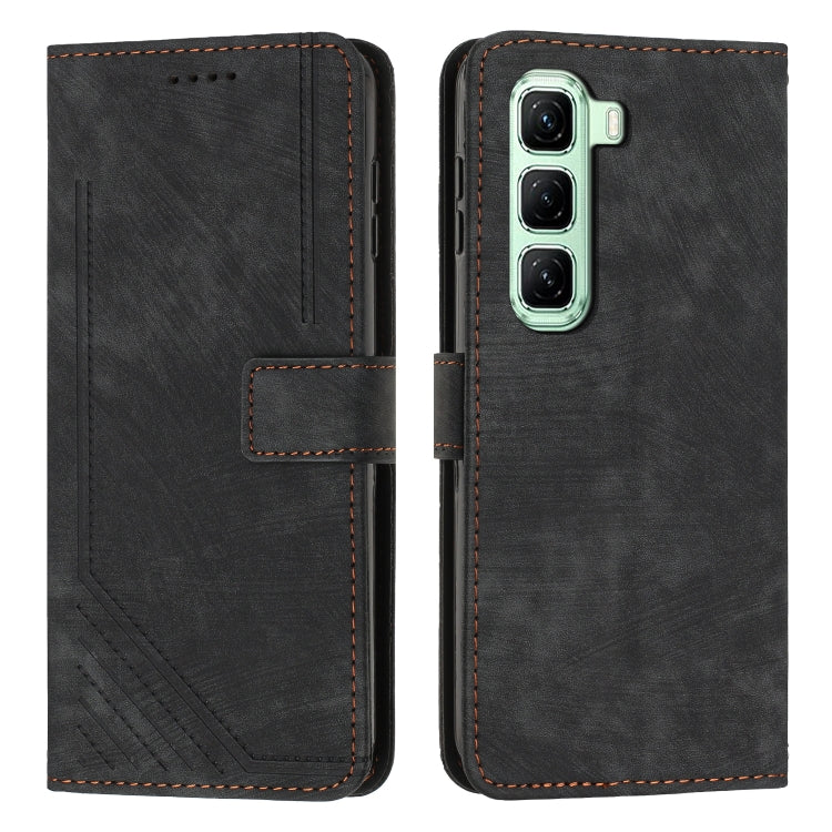 Funda de Cuero para Infinix Hot 50 Pro 4G con Diseño de Rayas y Cordón (Negro)