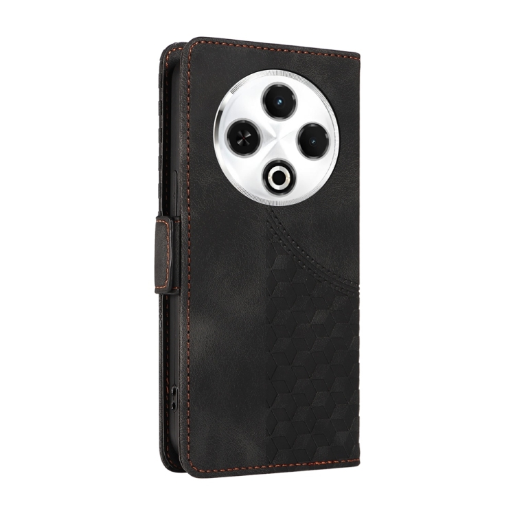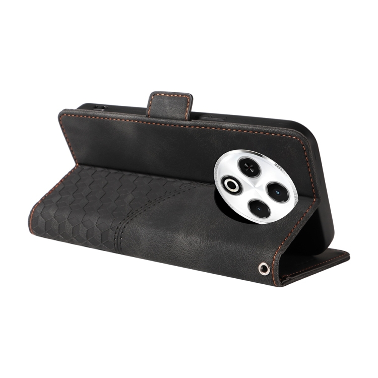 Funda de Cuero para Tecno Spark 30 4G con Diseño de Rombos y Estrellas en Relieve (Negra)