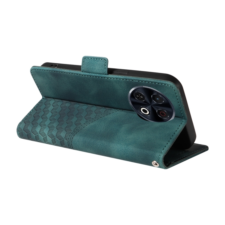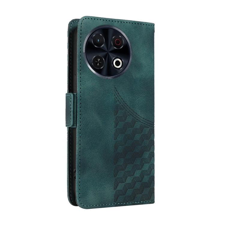 Funda de Cuero para Tecno Spark 30 Pro 4G con Diseño de Rombos y Estrellas en Relieve (Verde)