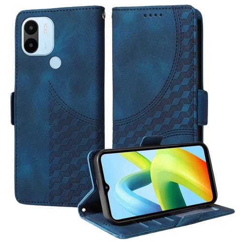 Funda de Cuero con Diseño de Rombos y Estrellas En Relieve para Xiaomi Poco C50/C51 (Azul)