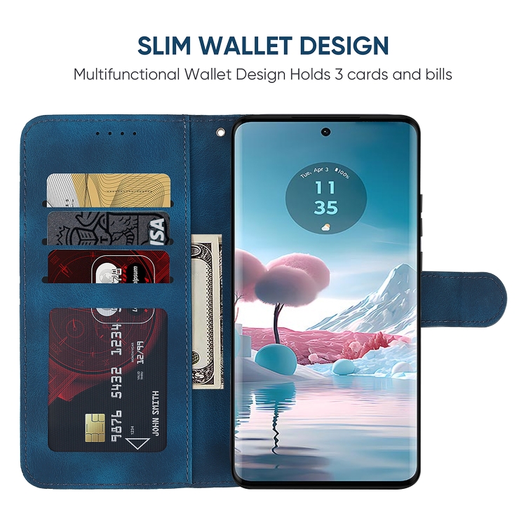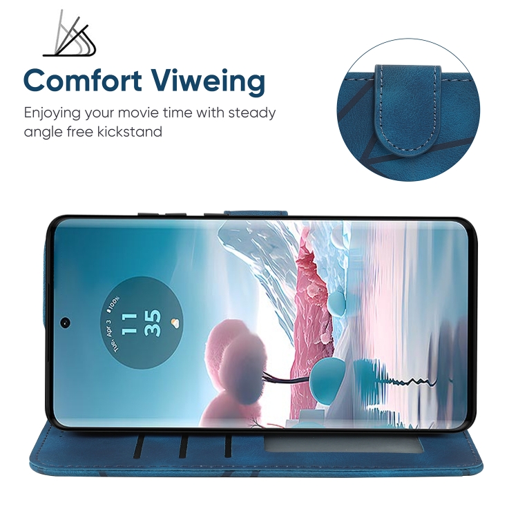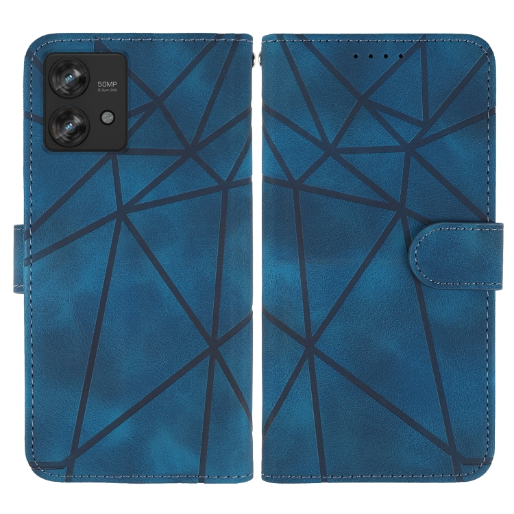 Funda de Cuero para Motorola Edge 40 Neo Skin Feel con Diseño Geométrico y Líneas (Azul)