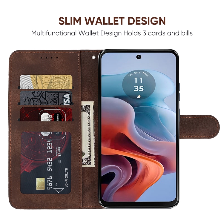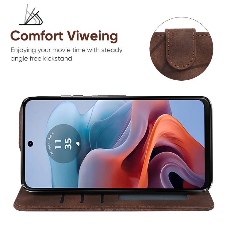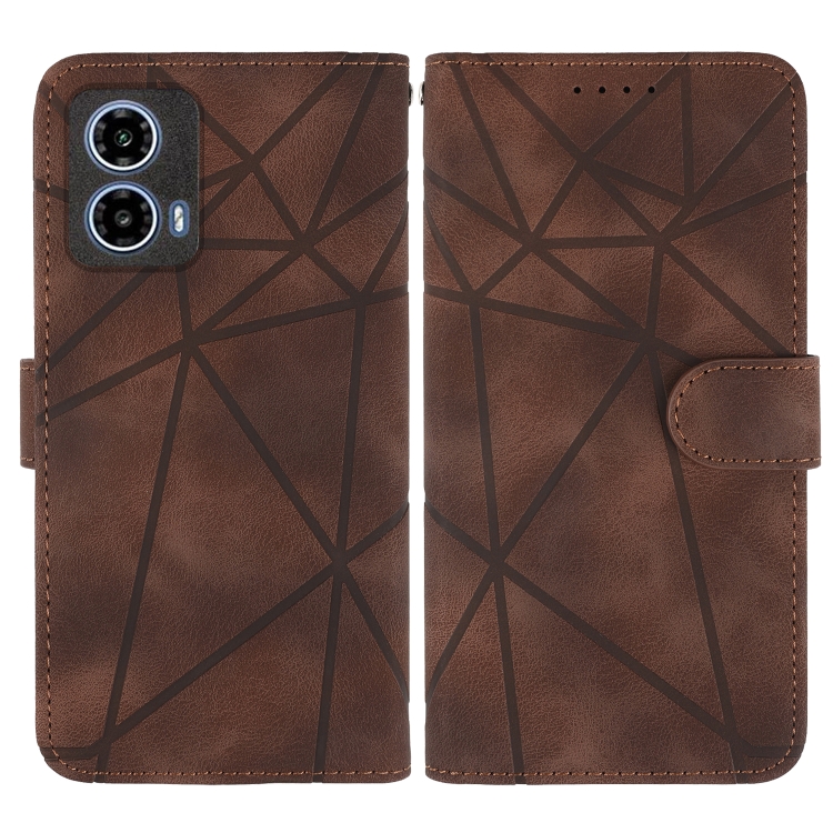 Funda de Cuero Motorola Moto G34 con Diseño Geométrico y Líneas (Marrón)