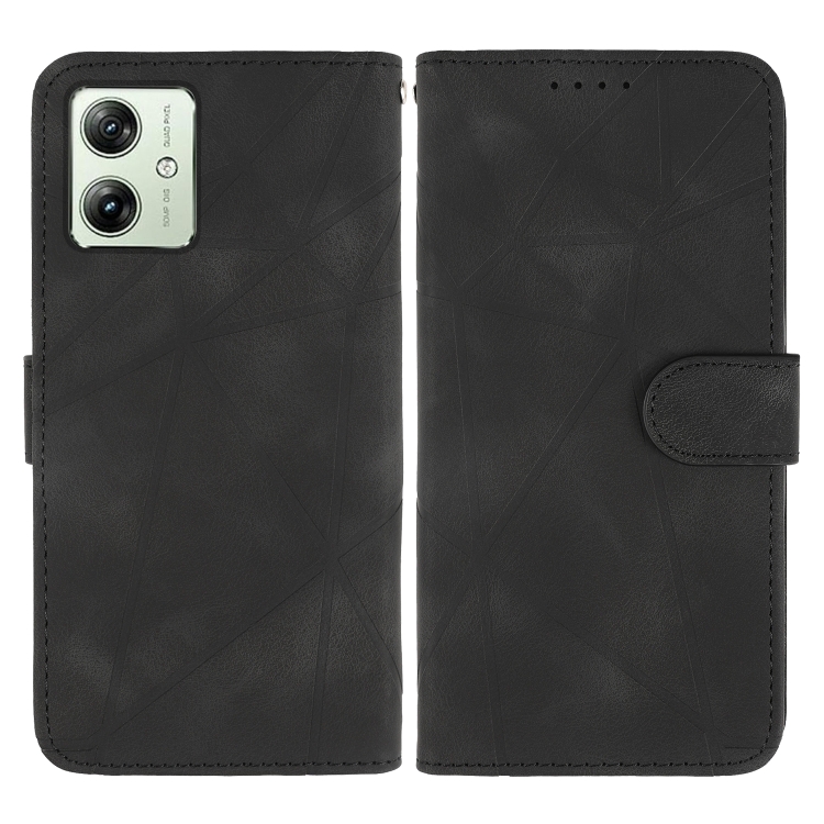 Funda de Cuero para Motorola Moto G54 con Diseño Geométrico y Líneas (Negro)