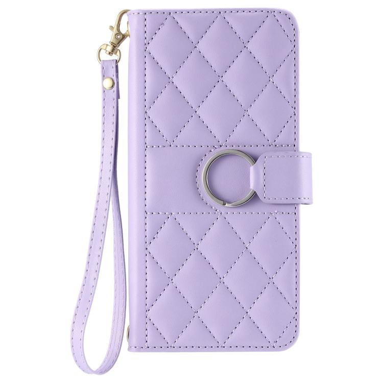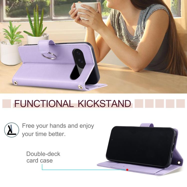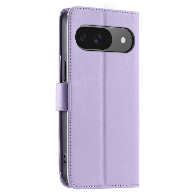 Funda de Cuero con Diseño Rómbico y Hebilla de Anillo para Google Pixel 9/9 Pro (Morado)