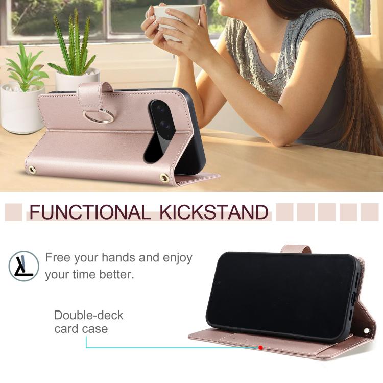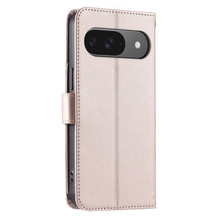 Funda de Cuero con Diseño Rómbico y Hebilla para Google Pixel 9/9 Pro (Oro Rosa)
