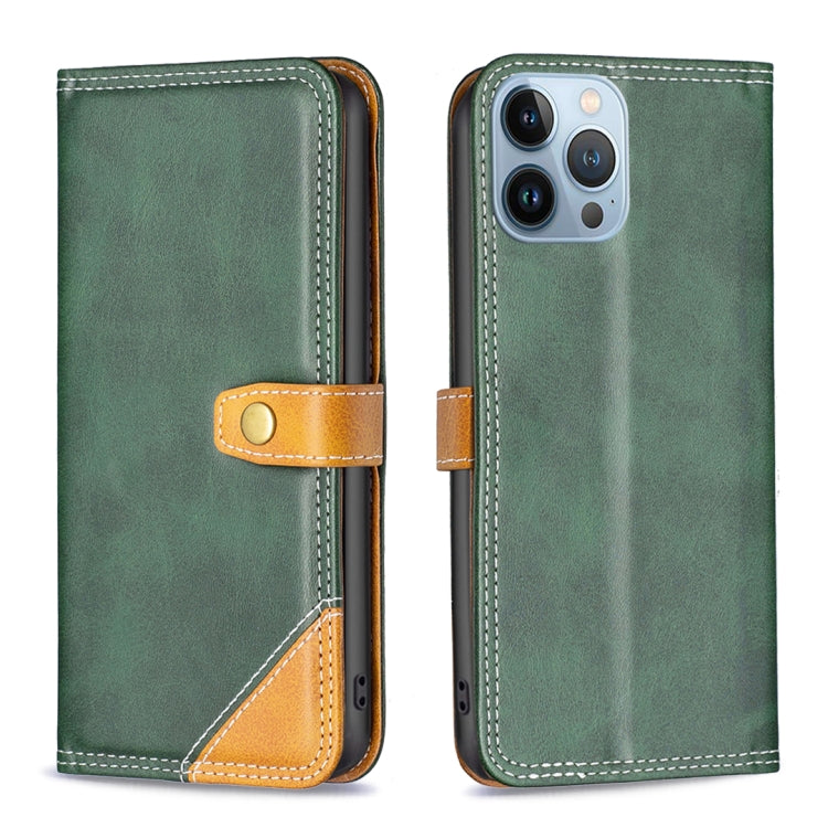 Funda de Cuero iPhone 13 Pro Doble Hilo de Coser (Verde)