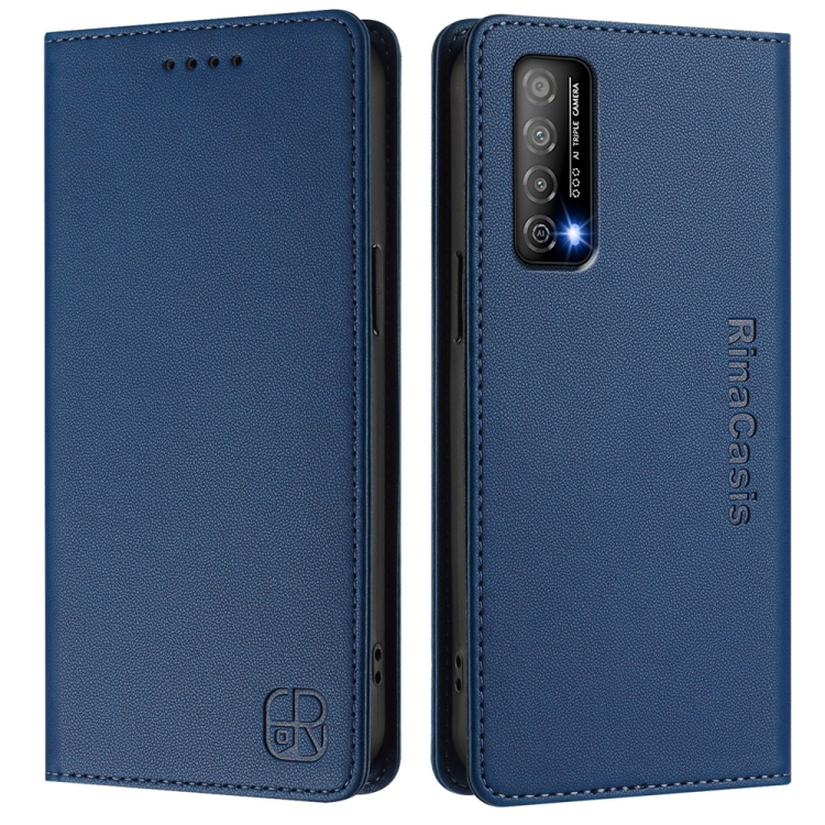Funda de Cuero con Doble Pliegue y Succión Magnética para Huawei Enjoy 20 Se/Huawei Y7A Rc01 (Azul Oscuro)