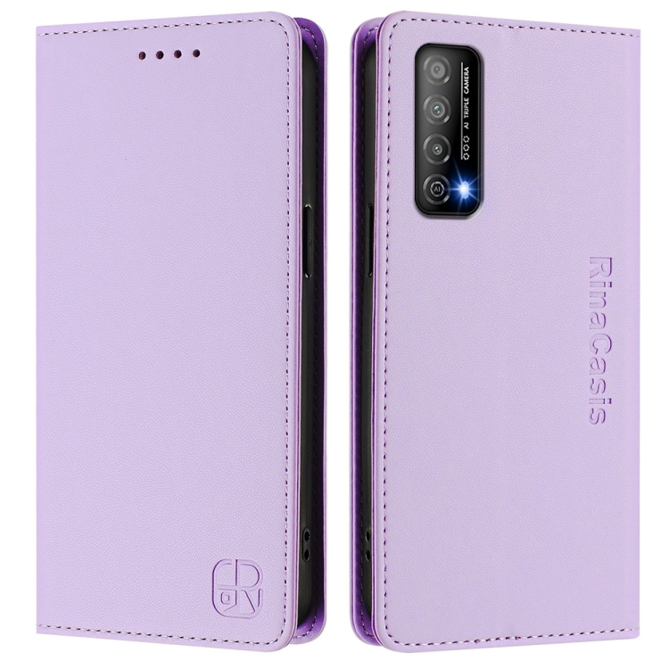 Funda de Cuero con Doble Pliegue y Succión Magnética para Huawei Enjoy 20 Se/Huawei Y7A Rc01 (Morado Claro)