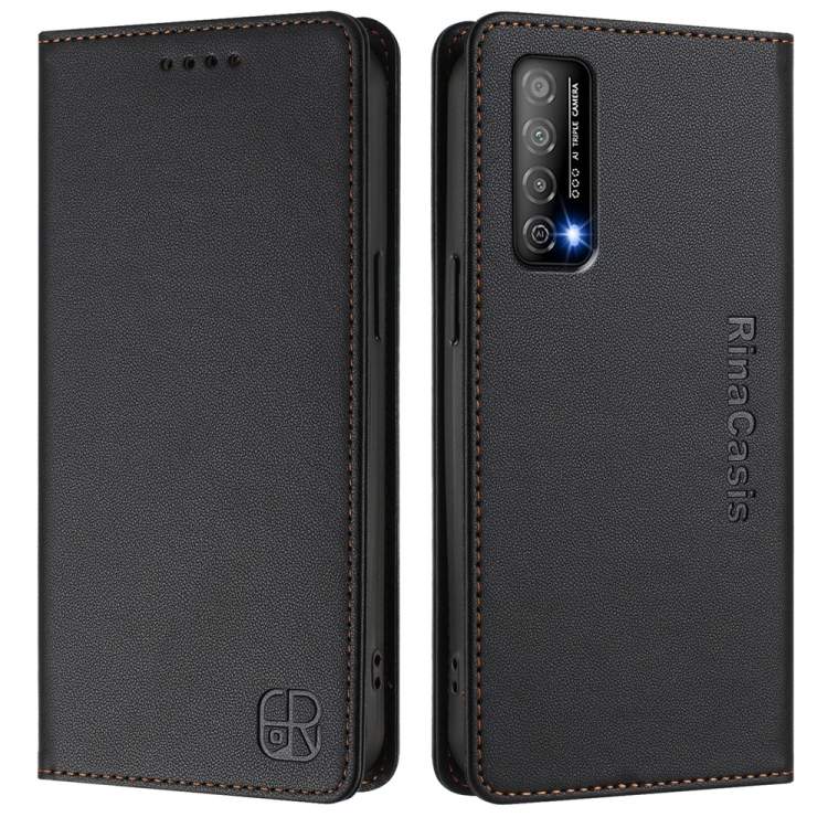 Funda de Cuero con Doble Pliegue y Succión Magnética para Huawei Enjoy 20 Se/Huawei Y7A Rc01 (Negra)